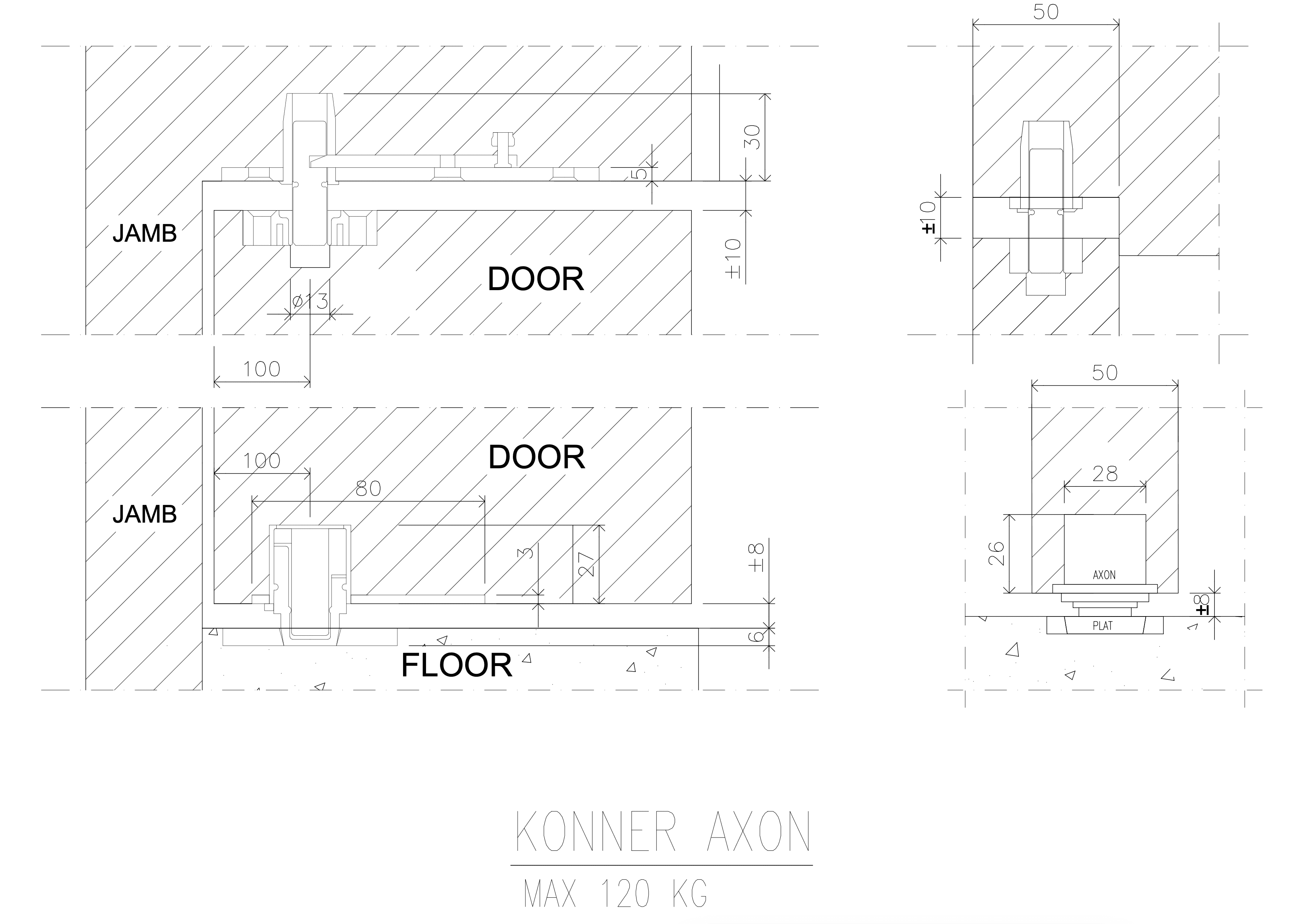 Advanced pivot system engineering for doors up to 120kg. AXON delivers smooth, controlled door movement with precision-machined components that ensure perfect balance and effortless operation in any application.